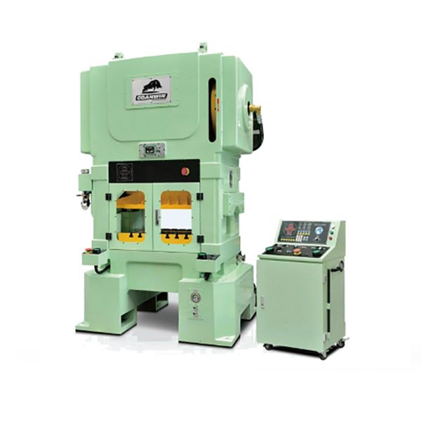 閉式雙點偏心大齒輪壓力機S2N固安力沖床機身為橫梁、立柱、底座分體閉式結構,龍門高速沖床結構用四根拉緊螺桿拉緊,剛性好。·偏心齒輪